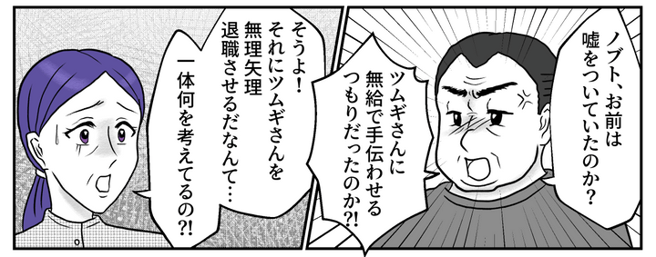 ツムギはきっぱりとノブトくんに伝えました。「私の人生を全部捧げるなんて、言ってない。ましてや自分がやりたかった仕事をしているのに、簡単に辞めるわけないじゃない。私にとっての幸せを、ノブトが勝手に決めつけたんだよ」