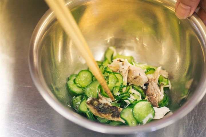作り方のコツは、最初にキュウリに塩をまぶし、しっかり板ずりすること。味がしみやすくなります。また、浜焼きのサバは、身をほぐしすぎず、やや大きめのほうがよいそうです。