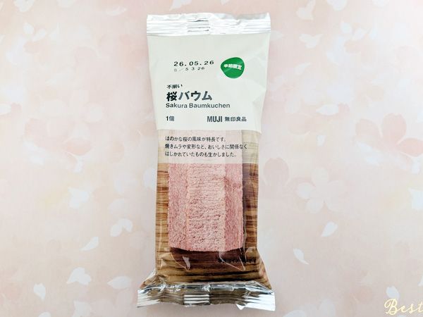 無印良品の定番「不揃いバウム」らしく、味わいは安定のおいしさ。しっとりとした生地は口当たりがよく、噛むほどにコクと桜の風味がじんわりと広がります。春のおやつ時間にぴったりです。
