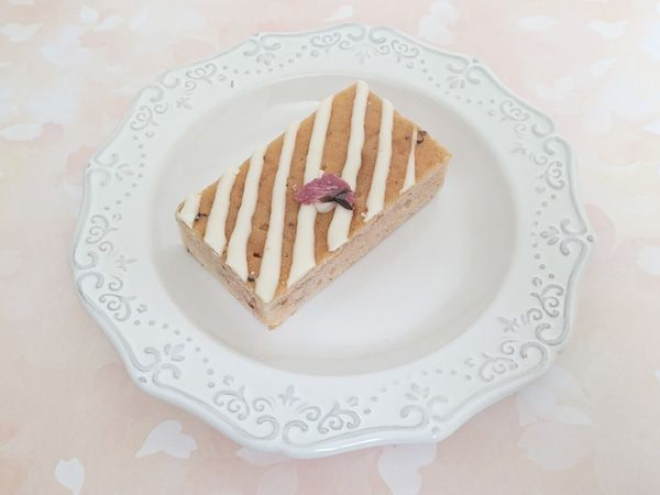 トッピングの桜の花は塩漬けになっているので、ケーキと一緒に食べるとほどよい塩味がアクセントになり、甘さがいっそう引き立ちます。ほんのりピンク色で、見た目のかわいらしさも魅力です。