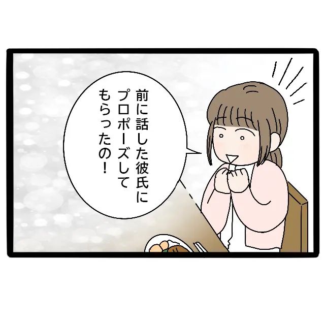 そうだ、婚約のことをまだ伝えていなかった!私は少し照れながら「そうそう!実は前に話した彼氏にプロポーズしてもらったの」と、隆明と婚約したことを家族に打ち明けました。あらためて口にすると、なんだか少し恥ずかしくなってきます。
