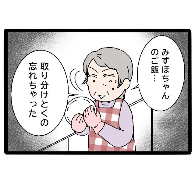 母は顔色をサァーッと青くすると、「みずほちゃんのご飯・・・取り分けとくの忘れちゃった」と申し訳なさそうに言いました。