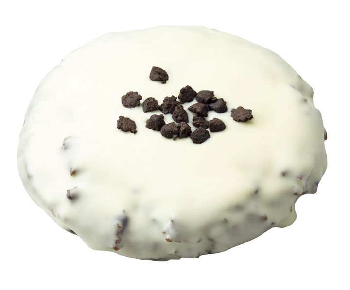 北海道限定「白いブラックサンダー」をイメージし、北海道牛乳を使用したチョコクッキーです。チョコチップとココアビスケット入りのザクザク食感のクッキーにホワイトチョコをかけ、ココアビスケットをトッピング。