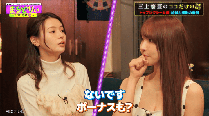 SNS総フォロワー数1800万人超えのタレント・三上悠亜が、セクシー女優時代の金銭事情や撮影の裏話などを赤裸々告白! 当時業界トップだった三上が「しんどかった」というアダルト作品の撮影に、紆余曲折経て活動を再開した元KAT-TUNの中丸雄一たちは衝撃を受けた。
