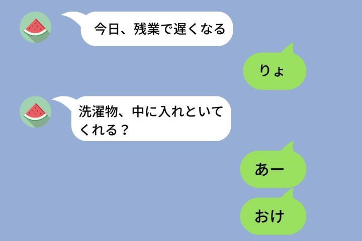 3. 「了解」だけのLINEが冷たいと妻に文句を言った→自分の返信が「おけ」「りょ」だらけだった