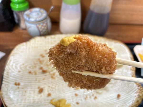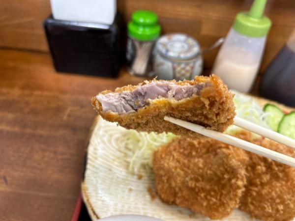 サクッと軽い感じのパン粉に、中のヒレ肉は柔らか~い! 下味のお塩がしっかり付いていたので、そのまま何も付けずに食べられます。
