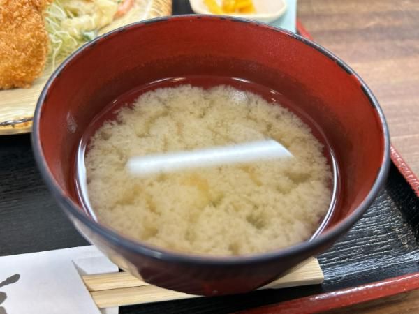 お味噌汁はこちら。熱々で、味がしっかり付いたお味噌です。