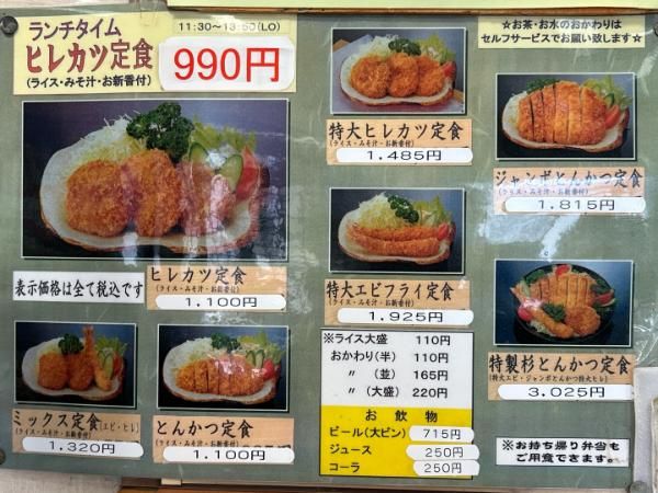 普通のとんかつ定食、ミックスフライ定食、特大エビフライ定食もとっても美味しそうだったので是非足を運んでみてくださいね。