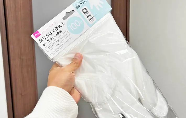 そんな悩みを解消してくれるのが、100円ショップ『ダイソー』の『引っかけたまま使用できるポリエチレン手袋』。