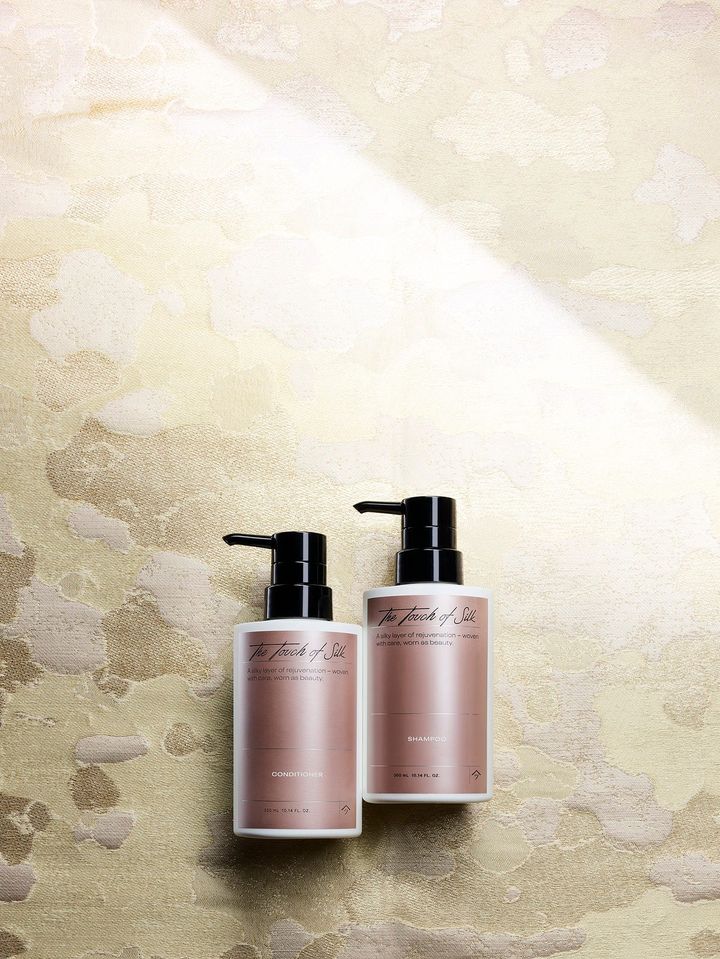 こうした思いから生まれたテキスタイルブランド「HOSOO」では、西陣織を用いたインテリアなどのホームコレクションをはじめ、近年は洋服やボディコスメコレクション「ザ タッチ オブシルク」を通じてその可能性を拡大しています。絹の文化を次世代へ伝える取り組みのひとつとして、化粧品の開発にも取り組んでいるのです。