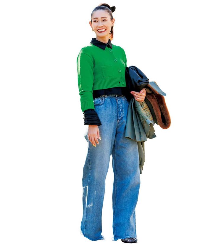 今、オシャレ40代が「デニムパンツに重ねてる」アイテムは?お腹周りもカバー!