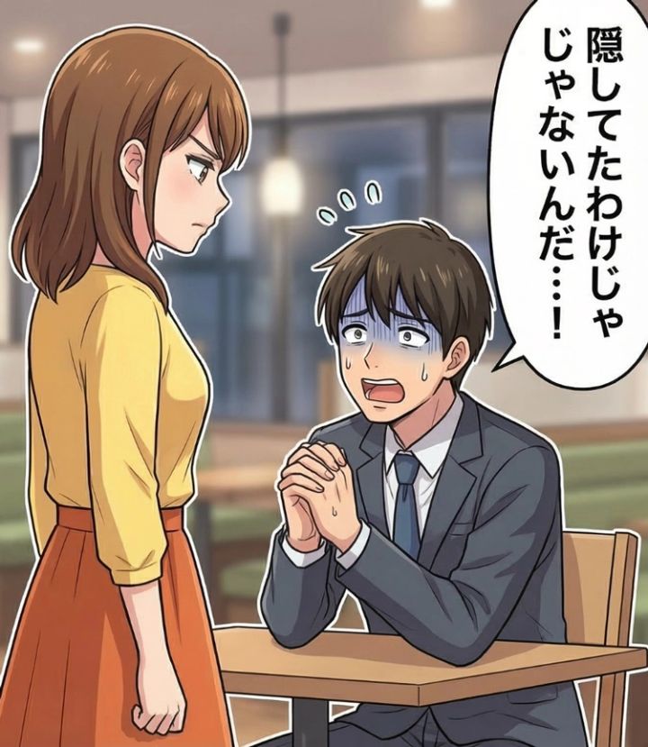 悩んだ末、私は彼としっかりと話しあう場を設けました。彼に妹から聞いた話をぶつけると、彼は慌てて弁解しましたが、最終的には事実を認めました「隠してたわけじゃないんだ、本当にごめん」と言い訳を続ける彼。
