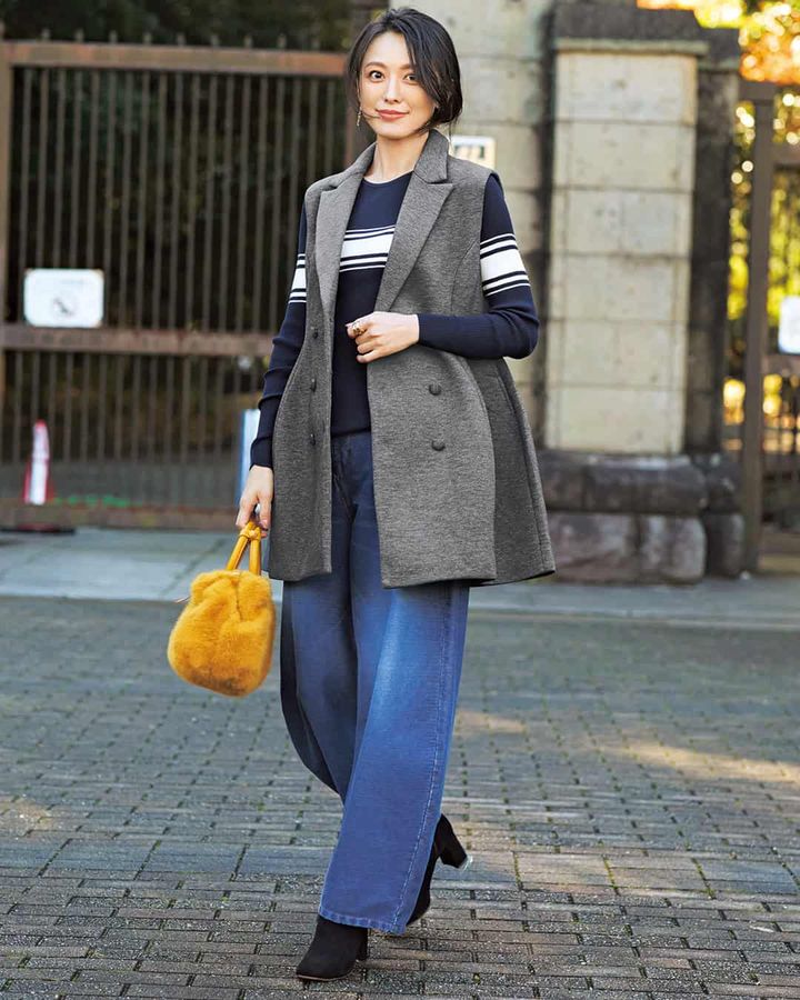 ②昨年大ヒットした着回し力抜群のジレ!ミドル丈で使いやすい