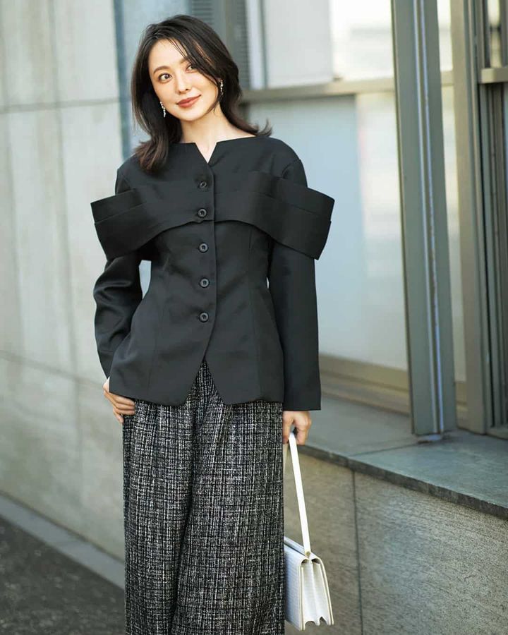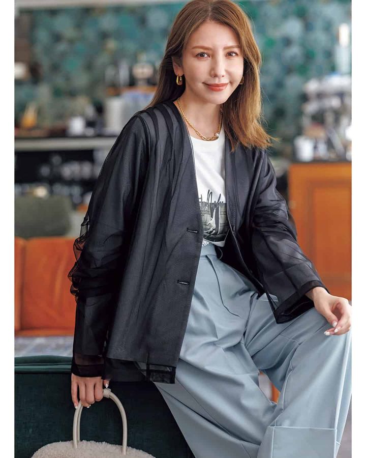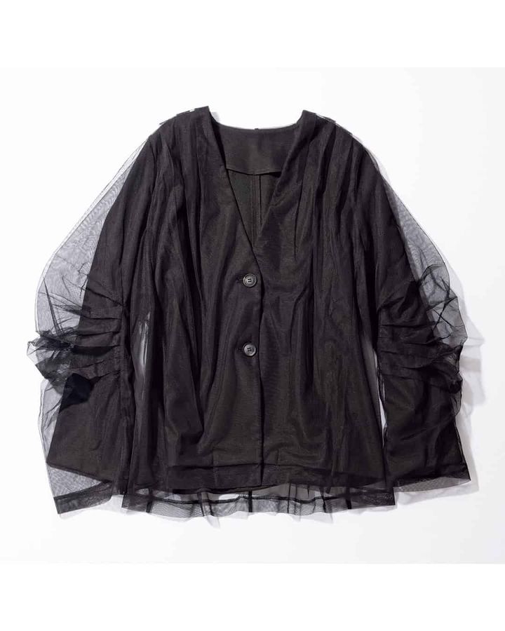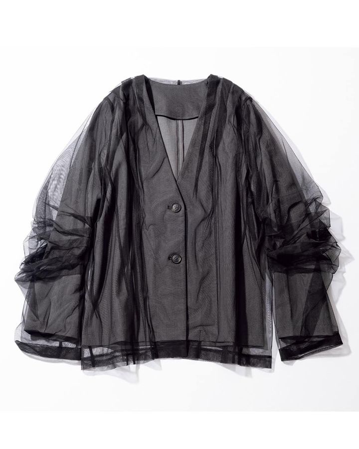 ③オシャレ感度の高い「スーツ素材×チュールジャケット」