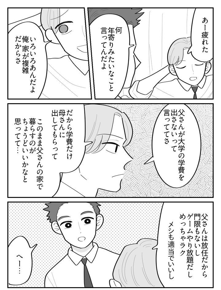 俺はユウタ。私立の中高一貫校に通う17歳だ。両親が離婚してしばらく母さんの実家にいたけれど、あまりに口うるさいから父さんのもとへ逃げた。父さんは放任主義だから気楽でよかったが、「大学の学費は出さない」と言ってきた。約束が違うじゃないか。しかも母さんまで「お父さんと真剣に話し合いなさい」なんて突き放してきた。とんだ親ガチャ失敗だ……。親が離婚したせいで、こんなに苦労させられるなんて。俺は本気でそう思っていた。