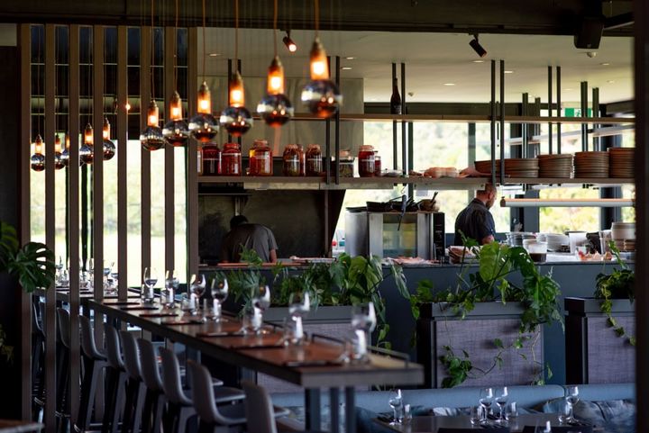 「ケーブル・ベイ」内にあるレストラン「ヴェランダ」は小高い丘に位置し、ハウラキ湾やオークランドの街並みを一望できる絶好のロケーション。コルクなどの自然素材を用いた店内は、大きな窓から自然光も燦々と降り注ぎ、温かみがあって居心地のいい空間になっています。