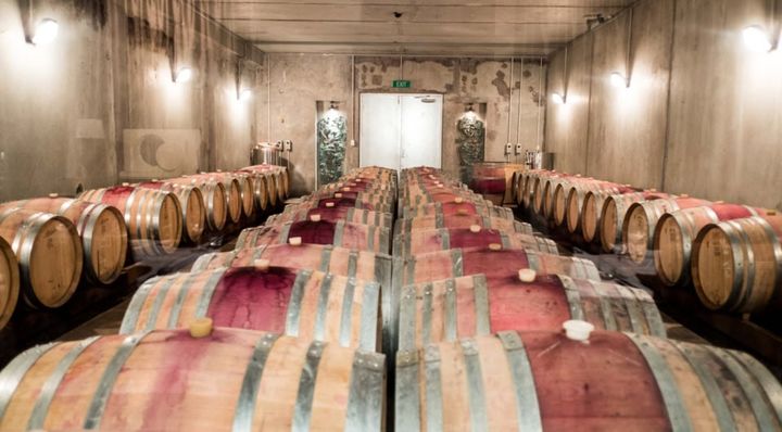 圧巻のワイン樽。こちらでは美味しい赤ワインが熟成されています!