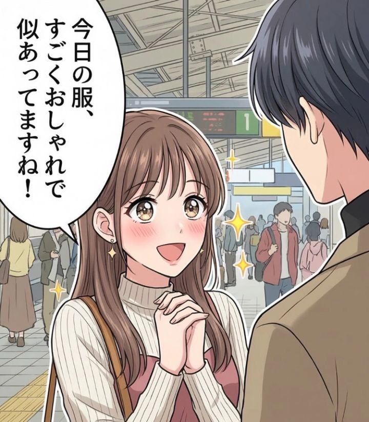 合流してすぐ、私は「今日の服、すごくおしゃれで似あってますね!」と笑顔で伝えました。