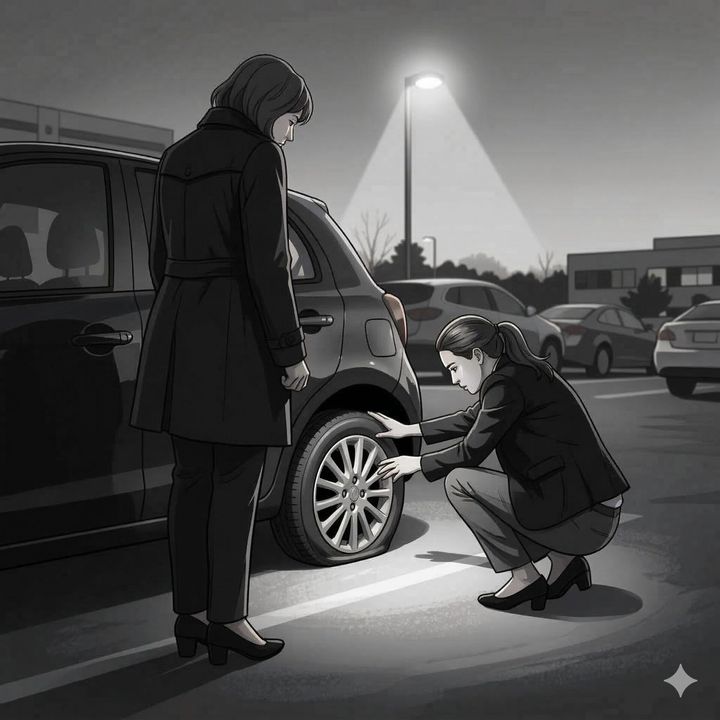 仕事終わりの薄暗い駐車場で、新入社員が泣きそうな顔で立ち尽くしていました。