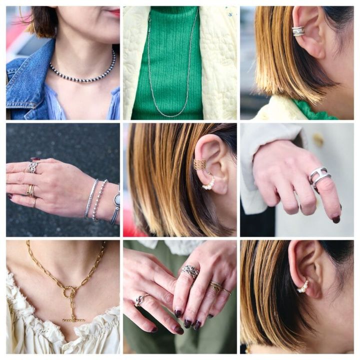ナバホパールをはじめ、ブレスレットやリング、イヤカフなど、川口さんのおしゃれにマストなのがインディアンジュエリー。「ナバホパールはさまざまなサイズを持っていて、コーデに合わせてつけます」(川口さん)