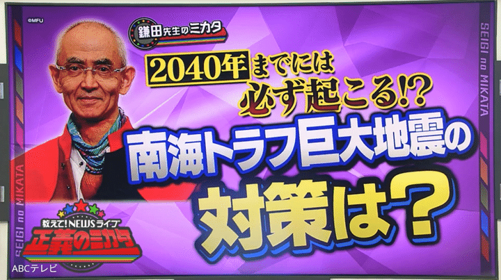 【TVer】京大名誉教授、南海トラフ巨大地震は「2030年代に必ず起こる」と断言! 「東京に行くときは……」今すぐ誰にでもできる災害対策を伝授