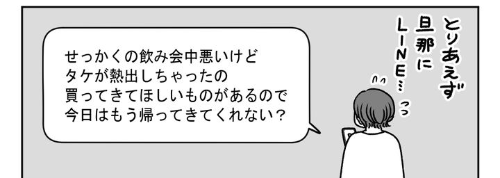3. <覚えとけよ?>休日は日中爆睡⇒夜飲み会旦那。子どもが発熱、帰宅を要請したら…?【まんが】