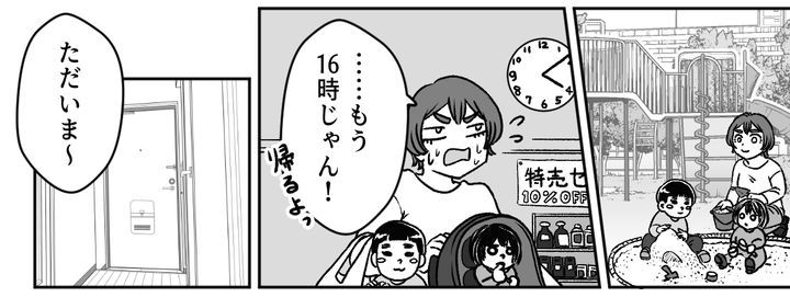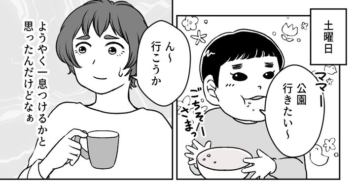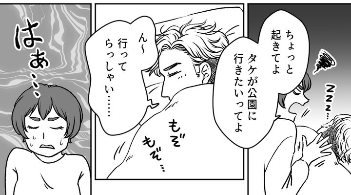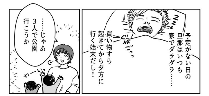 結局私がひとりで子どもを公園に連れて行き、スーパーに行って、スーパーにある遊び場でも少し遊んで……家に帰れたのは16時すぎです。私たちが公園に行く前は寝ていた旦那ですが、帰ってくると髪の毛をセットして、洋服もバッチリ着替えていました。