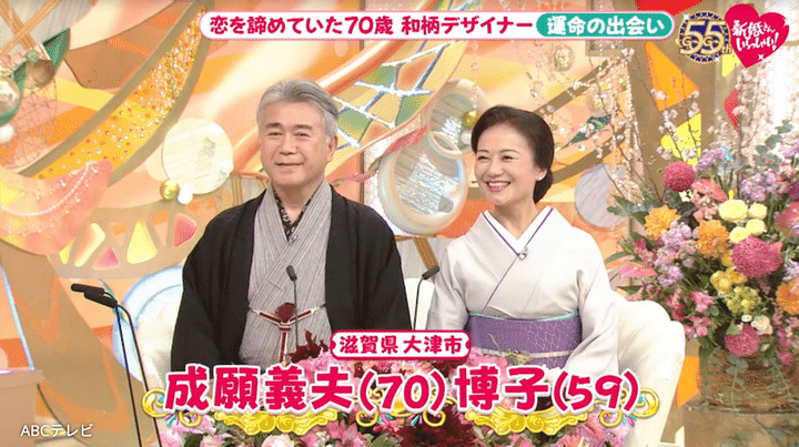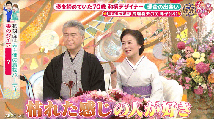 3月15日放送の『新婚さんいらっしゃい!』は、和柄に関する書籍を10冊出版、総売り上げが60万部を超える和柄デザイナーの夫70歳と、元ブティック経営者の59歳という大人のおふたり。