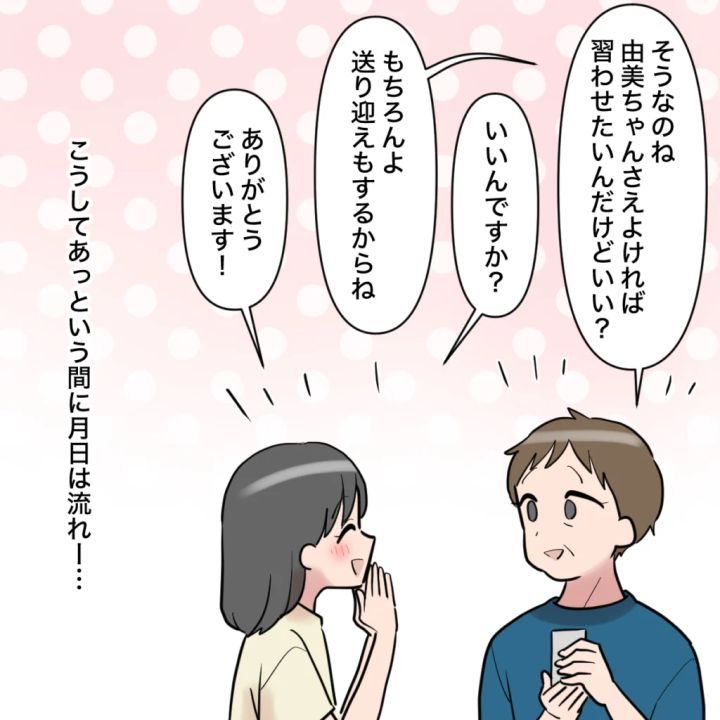差し出がましいかなと思いながら「そうなのね。由美ちゃんさえよければ習わせたいんだけどいい?」と聞いてみると「いいんですか?ありがとうございます!」と由美ちゃんは喜んでくれました。こうしてあっという間に月日は流れていきました。