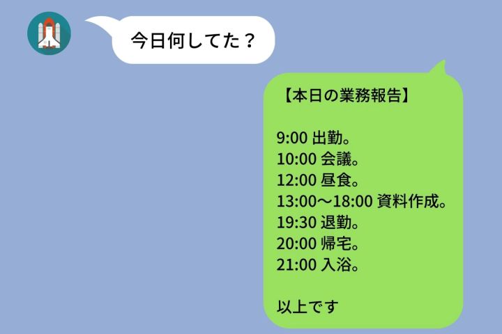 金曜の夜、残業でくたくたの状態で届いた「今日何してた?」。いつもなら「仕事してたよ、疲れた〜」と返すところですが、その日は書く気力もありませんでした。ぼんやり画面を見つめていると、ふと職場の日報が頭をよぎりました。