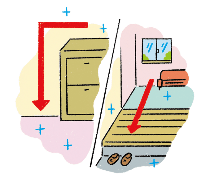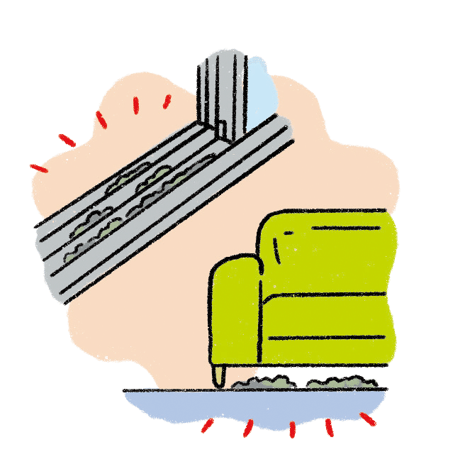 玄関、窓、換気口など、人や空気の出入りがある場所に近いほど花粉や黄砂がたまりやすくなります。また、ソファやラグマットなどのファブリック製品、静電気がほこりを吸い寄せる家電まわりなど、花粉がたまりやすい場所も、シーズン中は最低でも週に1回はしっかり掃除を。忙しい日は、人が集まるリビングなどの床を優先しましょう。