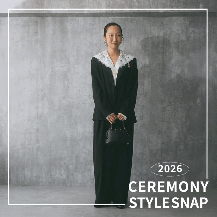 CEREMONY STYLE #01黒のセットアップにレースアイテムで甘さをひとさじ