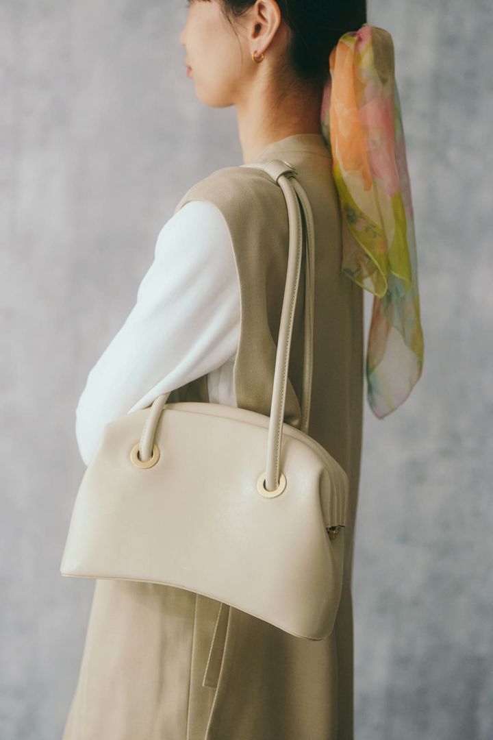 『オソイ』のバッグは、オケージョン用に購入したもの。ニュアンスのあるアイボリーだから、まろやかな印象に。