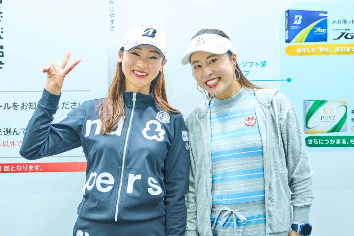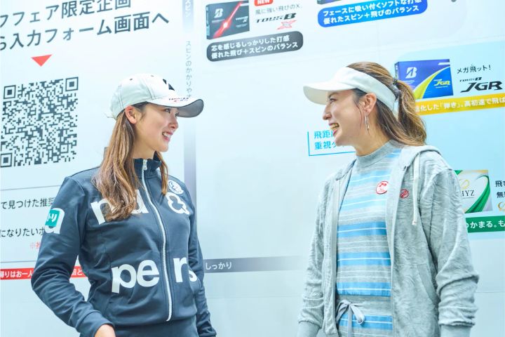ボール選びについて教えてくれるのは、“チームブリヂストン”の松田鈴英プロと、ブリヂストンスポーツ宮川さん。プロゴルファーの登場に少し緊張した様子のまいまいさんでしたが、会話が始まるとあっという間に打ち解けた様子。プロに直接ボール選びを聞けるチャンスに、興味津々で質問が飛び出します。