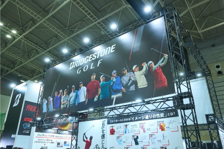 「ジャパンゴルフフェア2026」のブリヂストンスポーツブースには、2月に発売されたばかりの新作ツアーボール「TOUR B X/XS」などを体験できるコーナーが登場。初日から多くのゴルファーが訪れ、賑わいを見せていました。