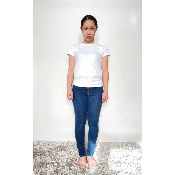 これだけで、ヒールなしのぺたんこ靴でも驚くほど脚がすらっと長く見えるんです。