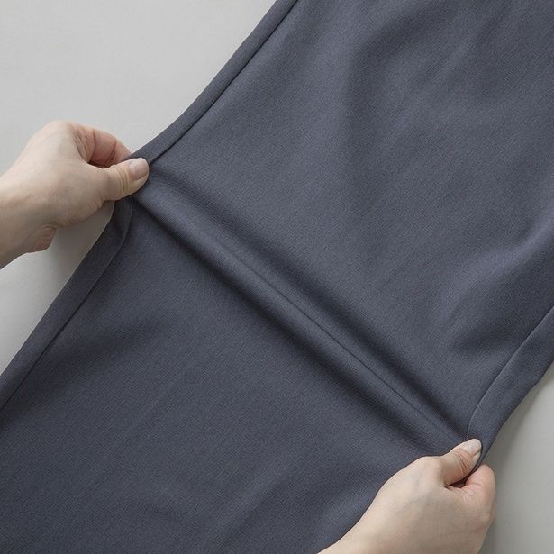 薄すぎる生地は、動くたびに肉感を拾ってしまいます。ハリのある素材なら、体のラインを拾わずにシュッとしたシルエットをキープできます。
