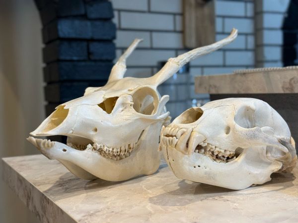 店内にはカウンター席とテーブル席があり、シェフが料理を仕上げる様子を間近で感じられるのも魅力。店内にはオブジェのように蝦夷鹿や熊の骨が置かれ、ジビエ料理へのこだわりも垣間見えます。