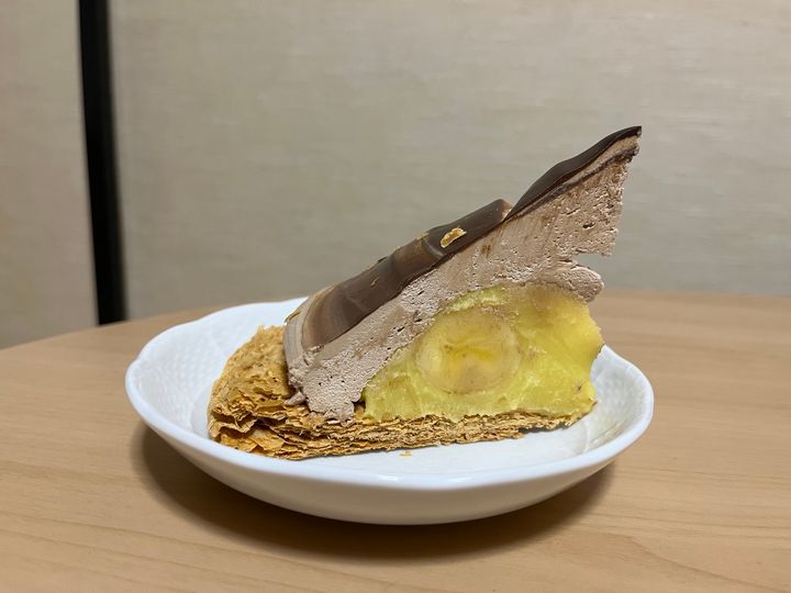 パイはチョコクリームとマロンクリームで、バナナをサンド。パイ生地のサクサクもいい食感。