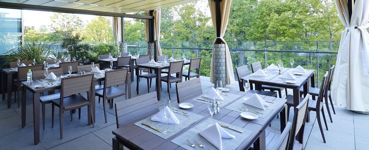 ファッションとカルチャーの発信地、青山・外苑前の一角に佇む「青山グランドホテル(THE AOYAMA GRAND HOTEL)」を象徴する、オールデイダイニング。緑あふれるテラス席では、イタリアンやエスニック、アジアン料理と、世界を旅するような多国籍の料理に加え、アルコールが味わえるところが魅力だ。