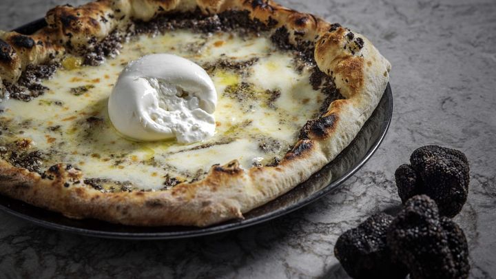 長年の経験と技に基づき、温度に合わせて作る香ばしい生地は、ふわふわの食感が魅力。濃厚でミルキーなブッラータや、熟成を重ねてクリーミーに仕上げたグラナ・パダーノDOP、もちもちとしたフレッシュタイプのモッツァレラに芳醇なトリュフがマッチしたピザ・「ブッラータ」は、ハズさない一品だ。