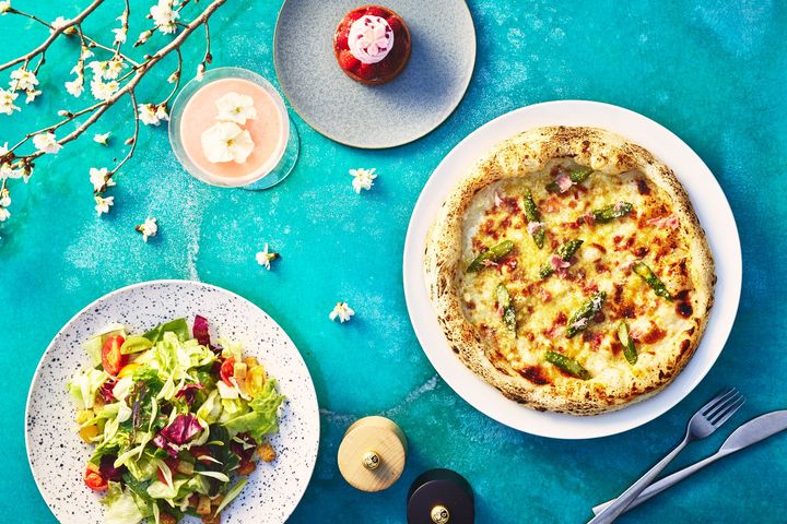 3月1日から提供開始している桜メニューを堪能できるスペシャルプラン“HanamiGarden”では、旬を迎えるアスパラガスや桜の花びらを使用した「チーズ アスパラガス 桜のホワイトピザ」や甘酸っぱいいちごと桜の上品なハーモニーを味わえる「ストロベリーと桜のタルト」など、思わず写真に収めたくなるような春らしいメニューが目白押し。