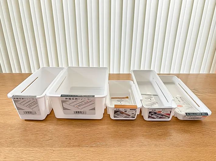 セリア『伸縮収納トレー』のサイズは5種類