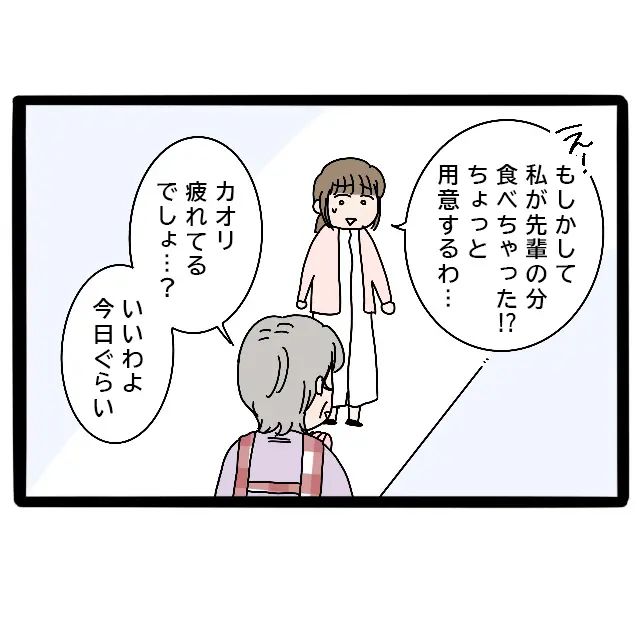もしかすると私が帰省したせいで、みずほ先輩の分まで間違えて出しちゃったのかな。そう思った私は「もしかして私が先輩の分食べちゃった!?ちょっと用意するわ」と申し出ました。けれど母は「カオリ疲れてるでしょ?いいわよ今日くらい」と、私の申し出を断ります。