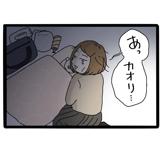 ドアを開けると、真っ暗な部屋で眠っているつむちゃんと、そのそばで座るみずほ先輩の姿がありました。私に気づいたみずほ先輩は、「あっ、カオリ・・・」と消え入りそうな声でつぶやきます。