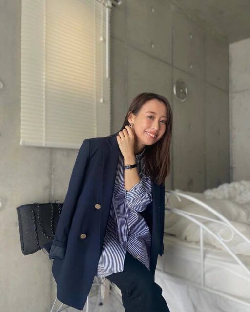 スナップで着用しているストライプシャツのブランドは>>UNIQLO(ユニクロ)