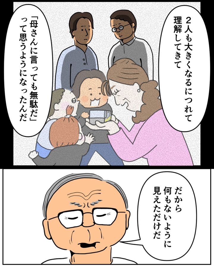 「2人も大きくなるにつれて理解してきて『母さんに言っても無駄だ』って思うようになったんだ、だから何もないように見えただけだ」義父は、複雑な表情でそう語りました。幼い頃から義母のルールの中で生きてきた紘一と元久さんからすれば、それが当たり前の光景になっていたのでしょう。