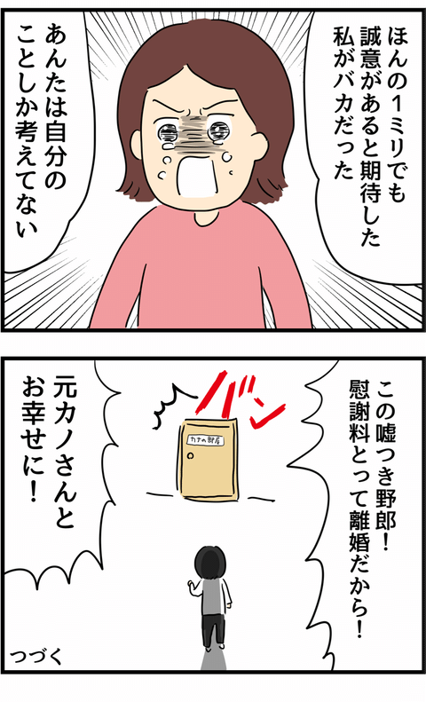 問題は身体の関係があったか否か。真実を知るために浮気相手に電話をしたところ、旦那と浮気相手の予想外の関係を知り、言葉を失います。