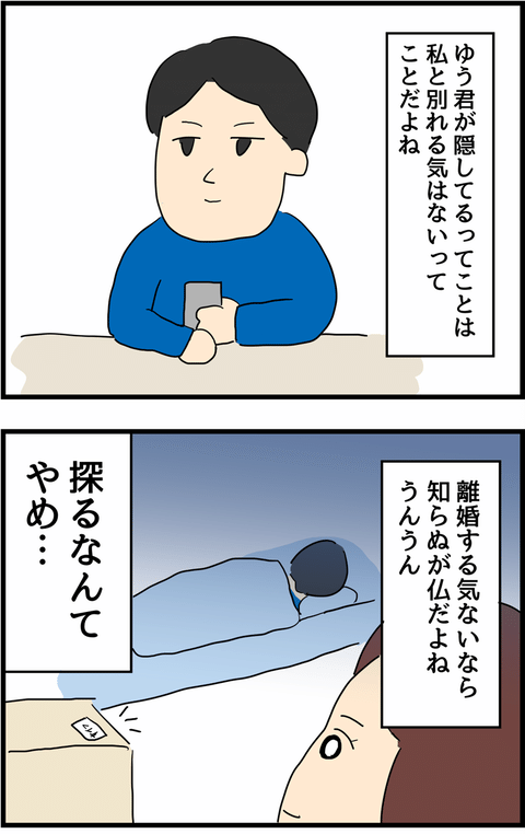 夫のあやしい行動に気づき、禁じ手のスマホチェックを行います。安易なロック設定に「シロ」を期待するも、そこには…。