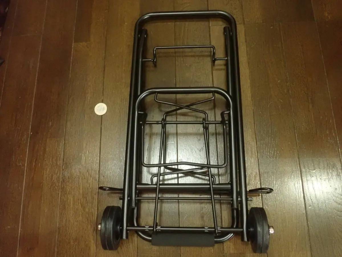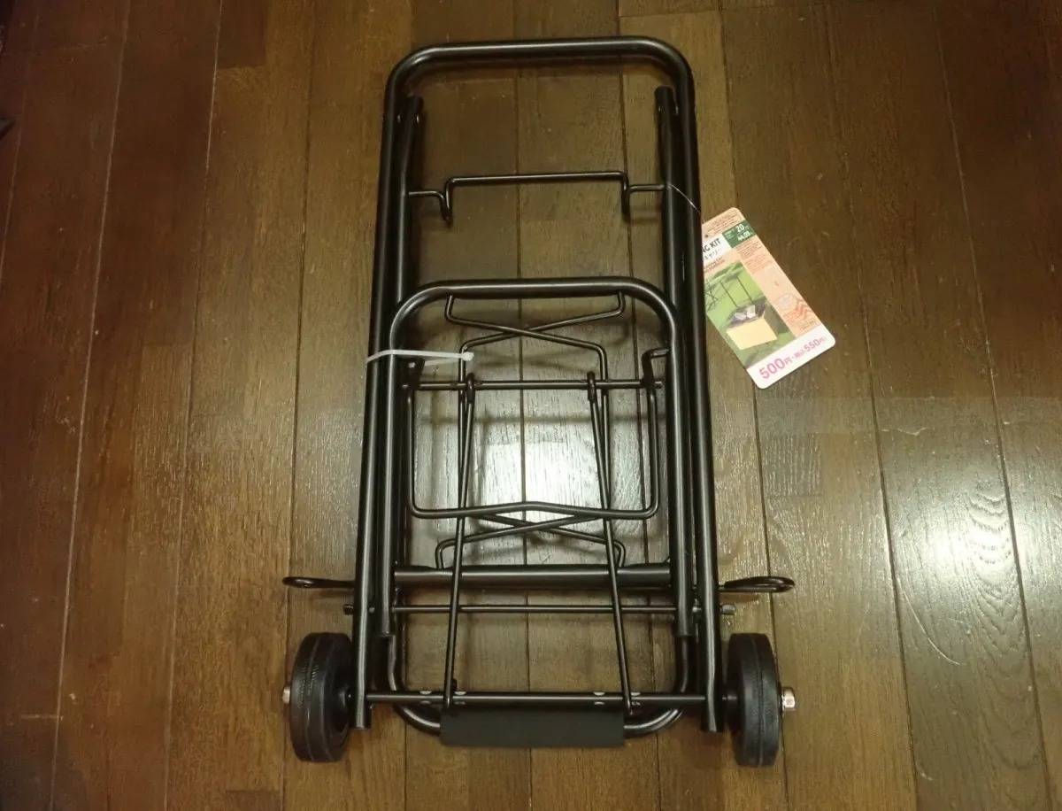 DAISO(ダイソー)の「折り畳みキャリー」は、荷物を持ち運ぶときに役立つ、折り畳み式のキャリーカートです。
